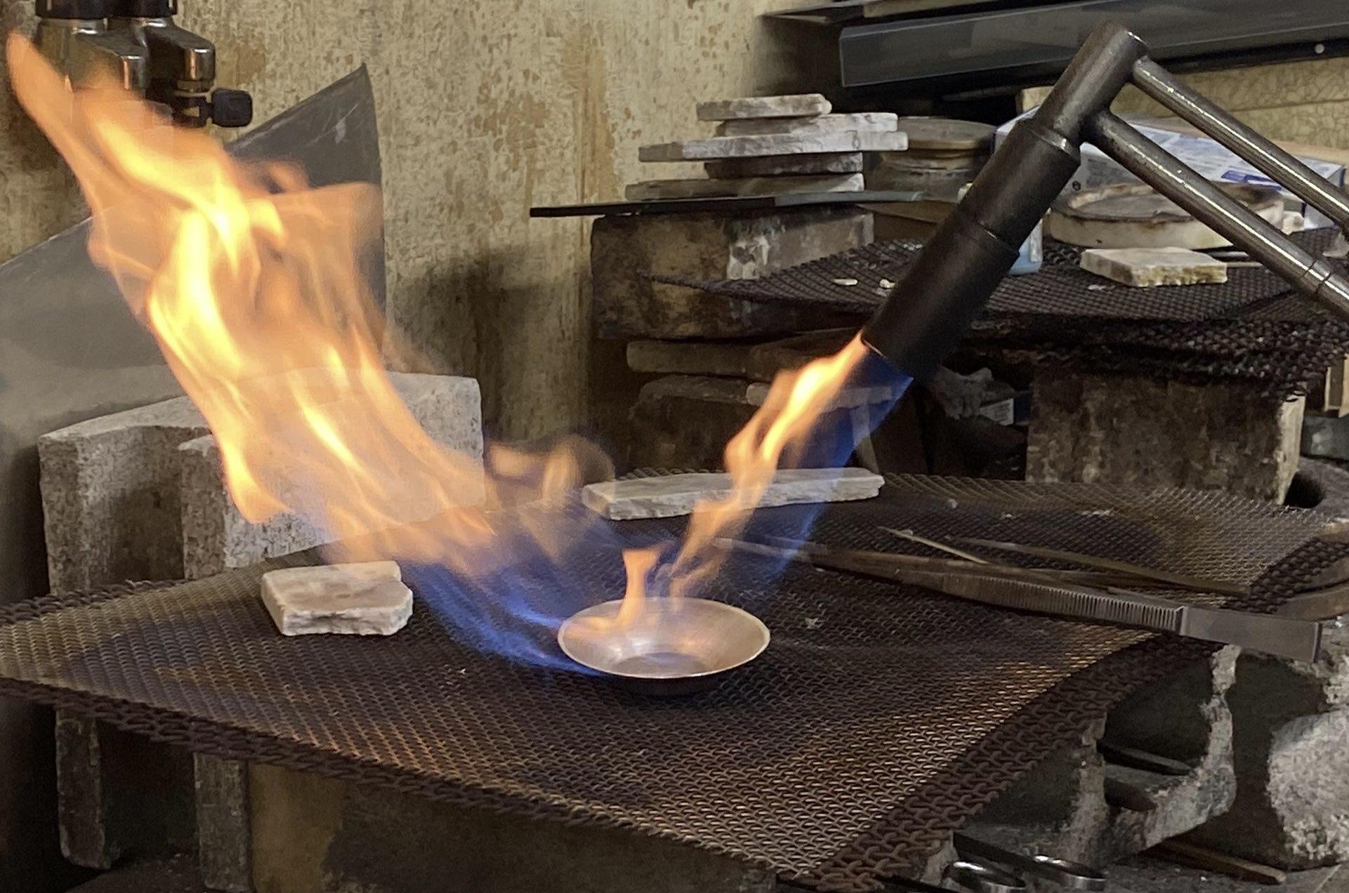 鋳型に溶けた錫を流し込んで制作するのですが、少しでも空気が混じってしまうと、底に穴が開いてしまうので、そこはやはり熟練の技術が必要!