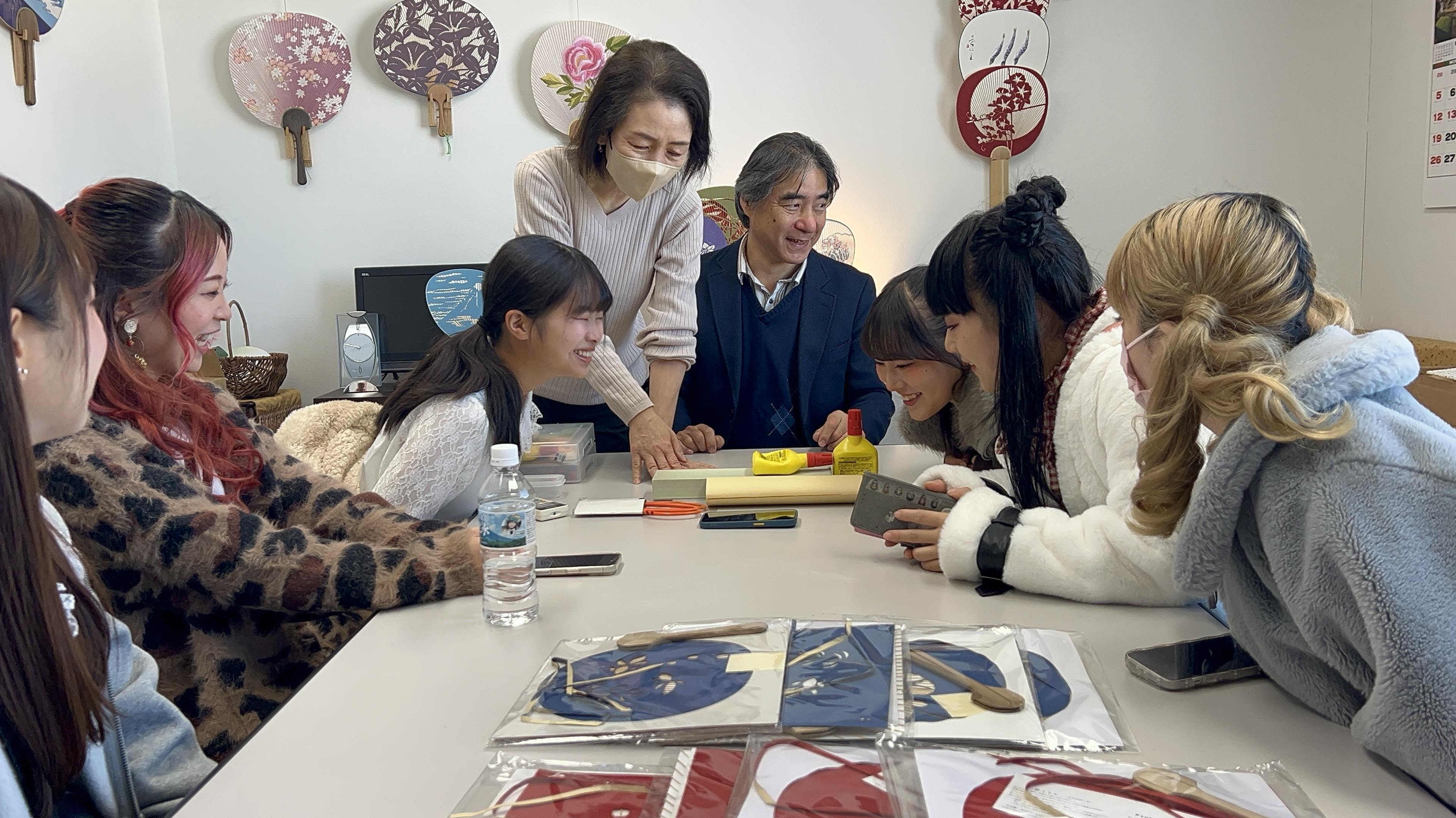 よく目にする団扇と全く違う「京うちわ」の特徴は、扇部分と持ち手を別で作り、差し込み組み合わせて完成させるところです。とても手間もかかる作業だとは思いますが、この工程に「日本のものづくり」の粋が表れているような気がして、とても愛着が湧きました!