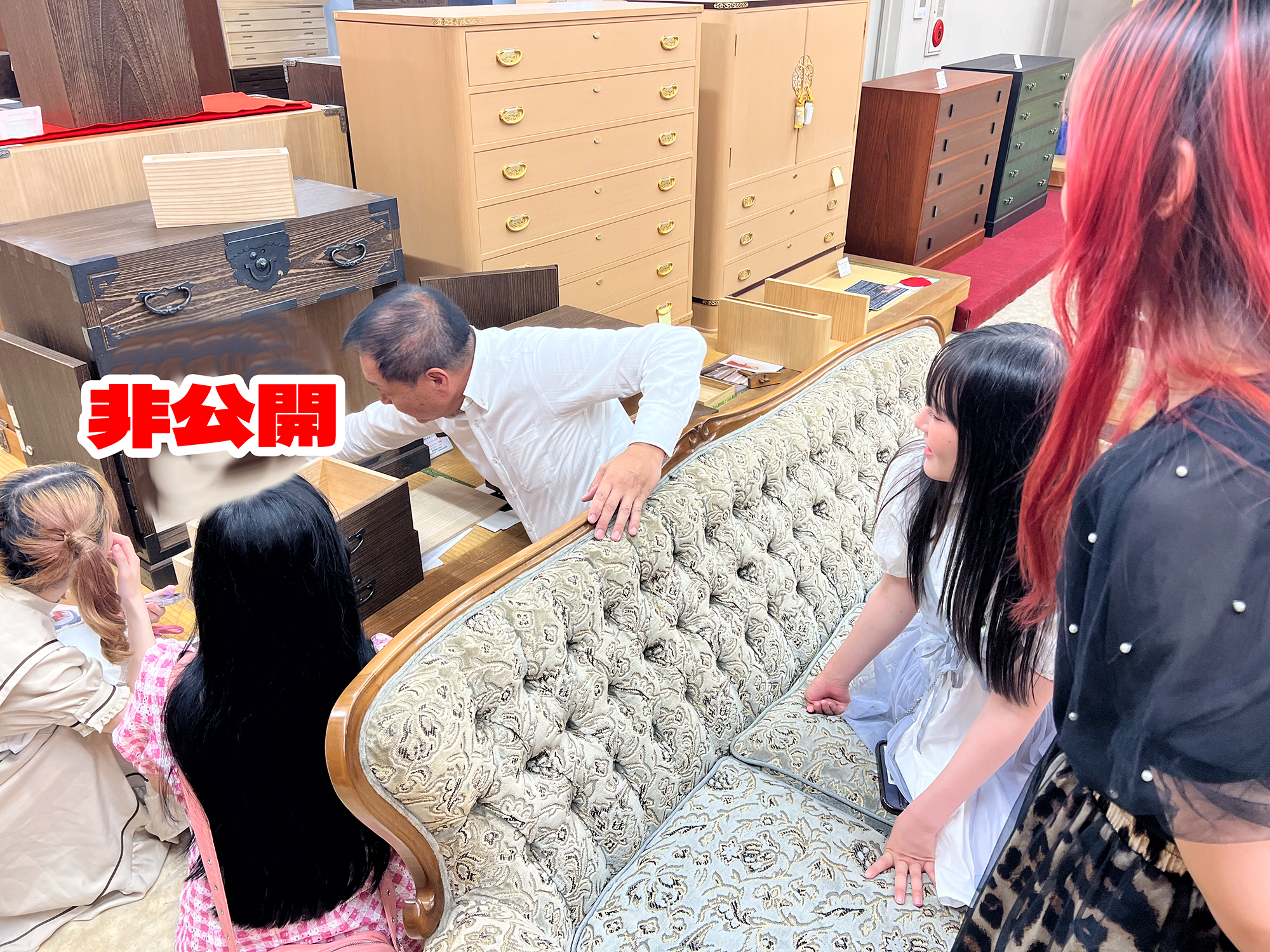 田中社長様自ら材料置き場、工場、そして販売スペースをご案内いただき、箪笥製造販売の厳しい現状などもリアルなお話として伺うことができました。